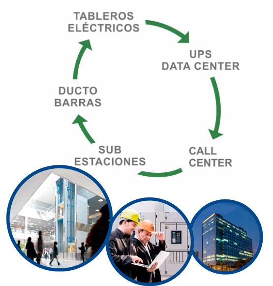 (Tableros eléctricos, Ducto de barras, Sub estación) -