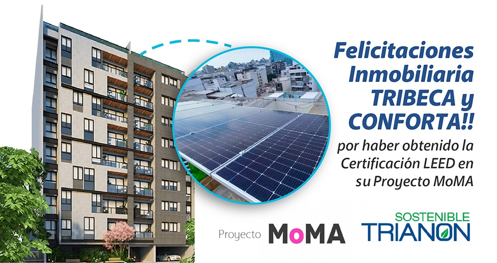 El edificio MoMA, ubicado en el corazón de Miraflores, a tan solo cuatro cuadras del Parque Kennedy, es un proyecto conjunto de las inmobiliarias TRIBECA y CONFORTA que ha logrado la certificación LEED gracias a su diseño sostenible. Este moderno edificio multifamiliar ha sido diseñado para mejorar la calidad de vida de sus residentes y reducir en sus operaciones eléctricas las emisiones de CO2.