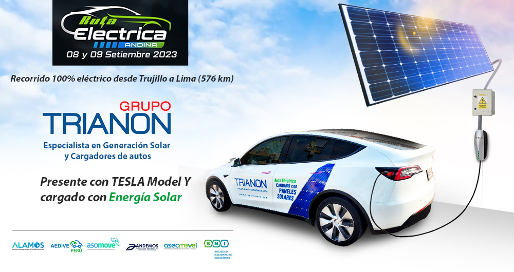 Grupo TRIANON participó en el evento Ruta Eléctrica Andina 2023 auspiciando al TESLA Model Y conducido por Alonso Figari, que recorrió los 576 km entre